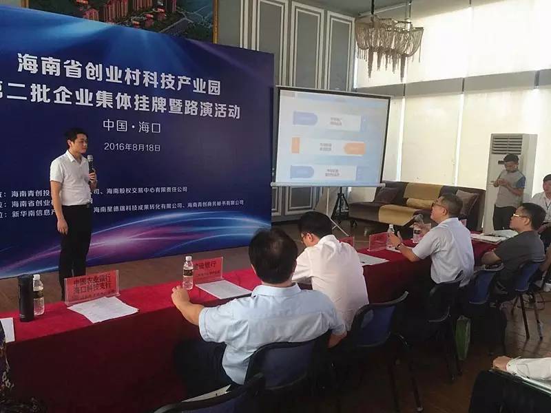 8月23日上午,海南股權(quán)交易中心聯(lián)合海南青創(chuàng)投資管理有限公司在海南省創(chuàng)業(yè)村科技產(chǎn)業(yè)園舉辦第二批企業(yè)集體掛牌儀式暨路演活動(dòng)。這也是繼創(chuàng)業(yè)村科技產(chǎn)業(yè)園服務(wù)中心正式運(yùn)營(yíng)以來(lái)的首場(chǎng)重要活動(dòng)。