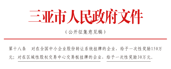 三亞市政策:(公開征集意見稿 )