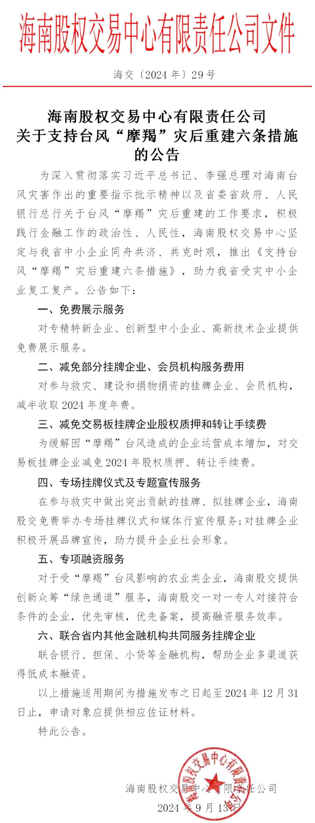 海南股權(quán)交易中心將深入了解受災(zāi)中小企業(yè)影響情況以及各方面的需求,充分發(fā)揮綜合金融服務(wù)平臺作用,幫助企業(yè)對接省內(nèi)其他金融機(jī)構(gòu),全力解決企業(yè)資金周轉(zhuǎn)難題,為堅(jiān)決打贏災(zāi)后重建攻堅(jiān)戰(zhàn),助力我省中小企業(yè)恢復(fù)生產(chǎn)經(jīng)營貢獻(xiàn)力量。