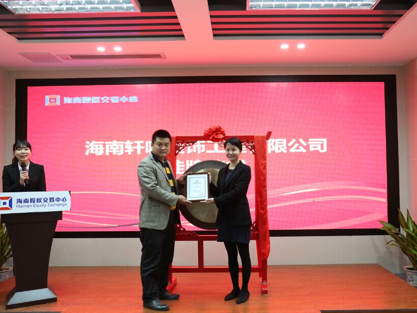 參與本次集體掛牌儀式的企業(yè)分別是:海南大信園林股份有限公司、海南高升醫(yī)藥科技開發(fā)股份有限公司、海南釜王實業(yè)股份有限公司、海南軒鳴裝飾工程有限公司和海南家美樂家庭服務(wù)管理有限公司。